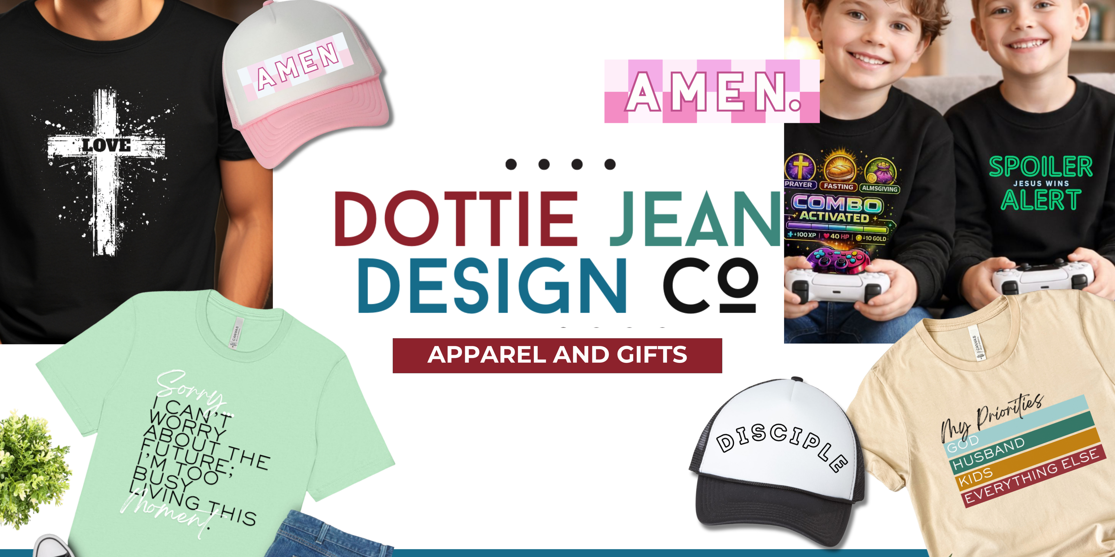 At Dottie Jean Design Co., we design prayers you can wear—faith-filled apparel created to inspire, encourage, and boldly reflect what matters most. Every piece is made with intention, prayer, and love. Find something meaningful and wear your faith with confidence.