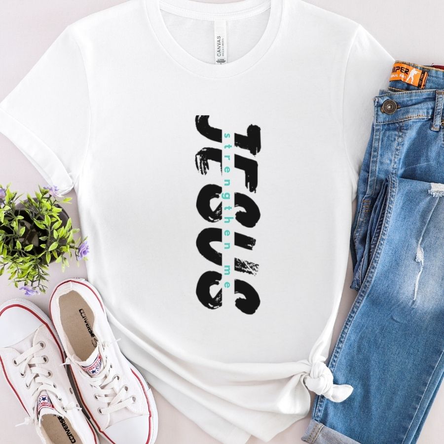This faith-inspired shirt is a quiet prayer for strength in every season. Featuring the word JESUS in the background with “strengthen me” flowing through the center, this design reflects a heartfelt request for guidance, endurance, and trust in Christ. Comfortable and easy to wear, it’s a meaningful Christian graphic tee, Catholic shirt, and faith-based apparel piece for anyone seeking strength through prayer, faith, and reliance on Jesus.
