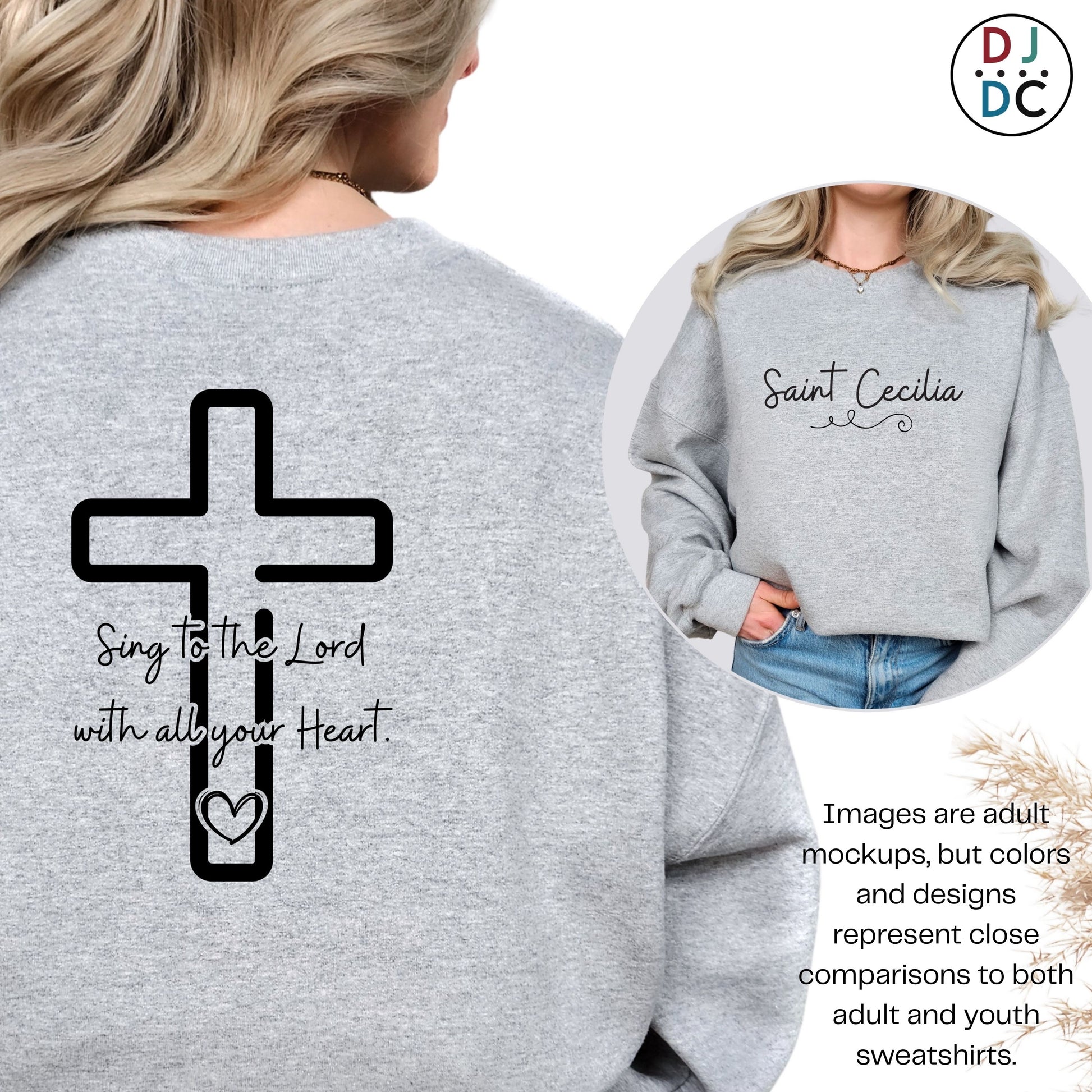 This Saint Cecilia sweatshirt is a wearable prayer inspired by her devotion, joy, and love of praising God through music. This sweatshirt is a great gift option for teens going through Confirmation who choose Saint Cecilia as their Confirmation Saint. It is also a good First Communion gift for kids who like music and singing. Saint Cecilia - Pray for us!